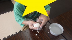 ゆでたまごを持つ手の力加減に苦戦する子もいましたが、みんなで楽しくおしゃべりしながら頑張りました♪