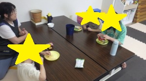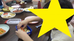 「星4!」「私は星5~!」と話しながら作ったお弁当を頬張っていました。