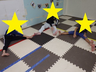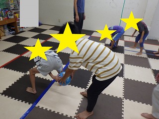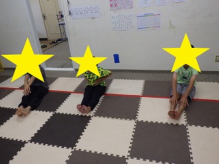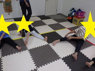 柔軟は数をかぞえながら足先にタッチしましょう!