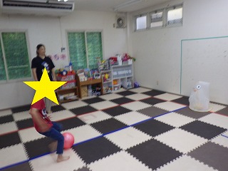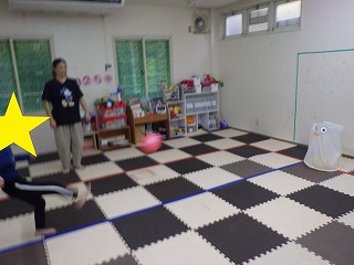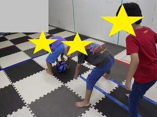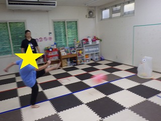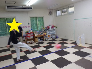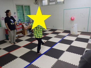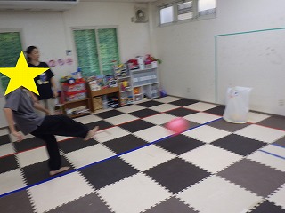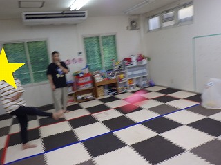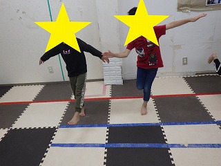 かかしの姿勢のまま足を前後に大きく振ってみましょう!