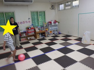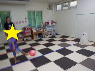 ゴールキーパーのオバケに当たらないようにシュートしてみましょう!