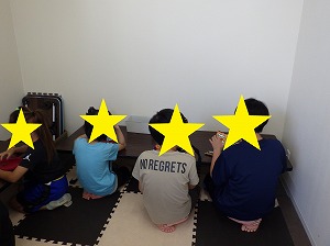 静の時間で少し休んだら、運動遊びを終わります。