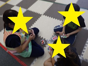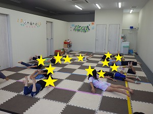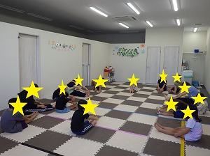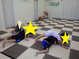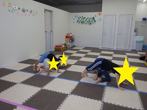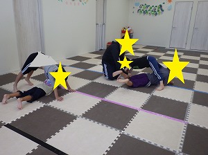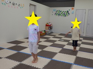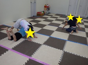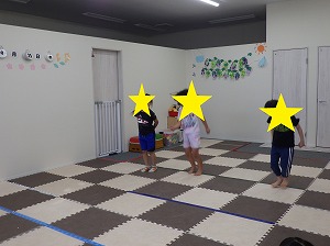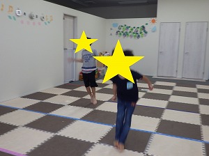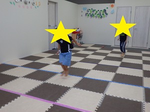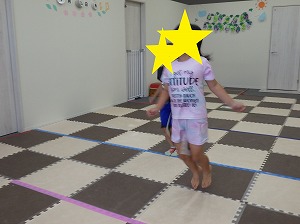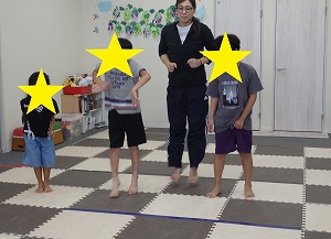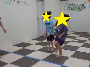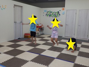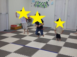 赤は止まる、青は前にジャンプ、黄色は後にジャンプ、というルールを守って、みんな楽しく参加できていました!