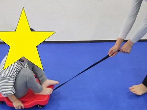 お友だちや先生が、お友だちの足を持って進んでいきます。
