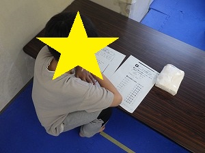 先生の足の間でグー。