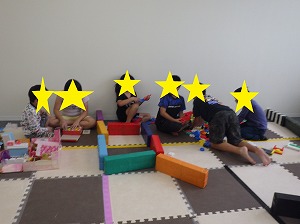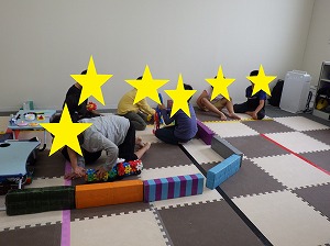 午後は、お友だちと一緒に平均台で大きな家を作ってごっこ遊びをしたり、お絵描きや音楽遊び等をしながら楽しく過ごしました☆
