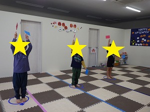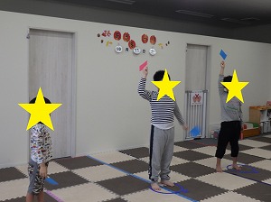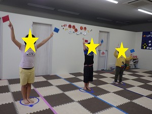 赤と青の旗を持ち、職員の指示をよく聞きながら上下に動かすことが出来ていました(*^^*)