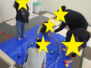 ブルーシートの下に隠れたお菓子を見つけ出す遊びをしました♪