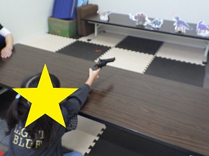 恐竜の的を狙って矢を飛ばし、全部倒そうと頑張っていましたヾ(≧▽≦)ノ