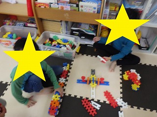 東京メトロの駅名を教えてくれたり、ブロックを使って線路を走る電車を作ってみたりして遊んでいます☆彡