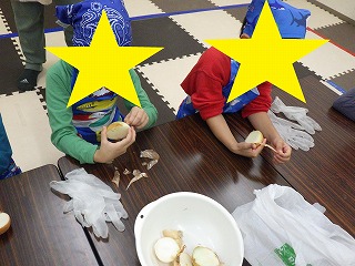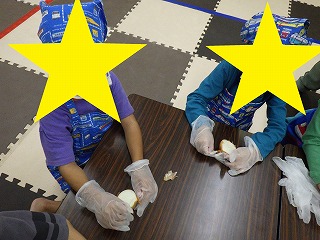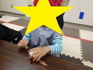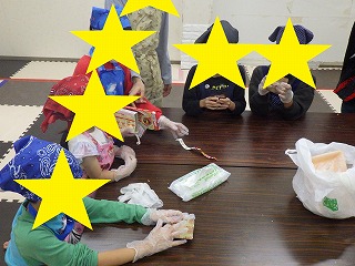お昼を食べたら、今日はみんなでハロウィンに向けて「ハロウィンランタン」を作りました。