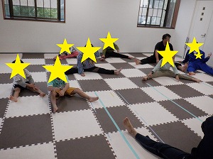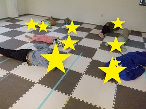 水分補給をした後は、寝たふり競争で横になって静かに過ごしました。
