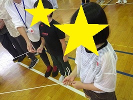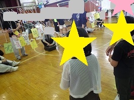 赤チームと白チームにわかれて一列に並び隣の人にバトンを渡していきました。白熱した戦いになり大盛り上がりでした☆彡