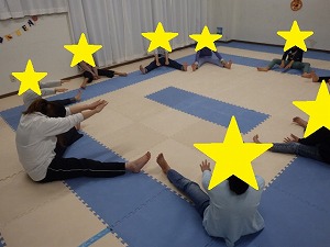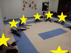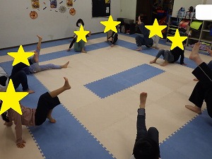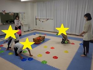 クモさん旗上げはクモさんの体勢になり、「右手、左手、右足、左足」のどれかを先生が指示します。