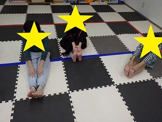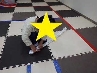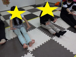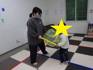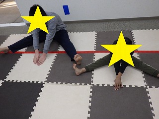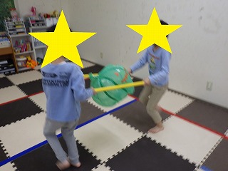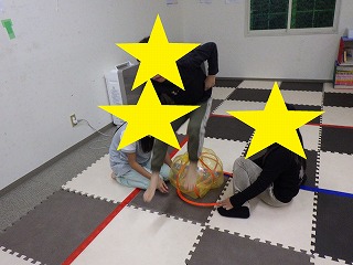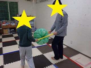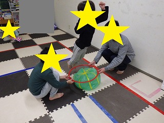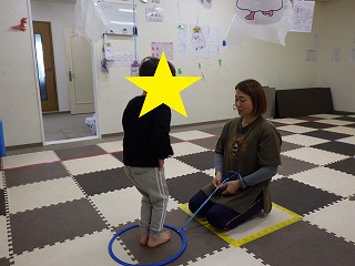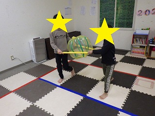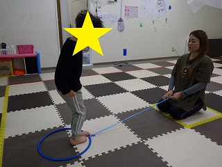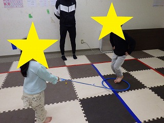 フープを持つ人は跳ぶ人のことを考えて高さを決めてね♪
