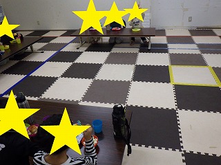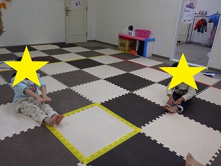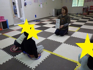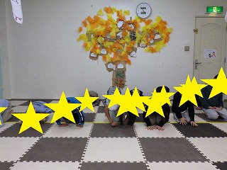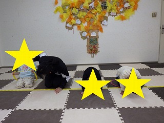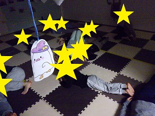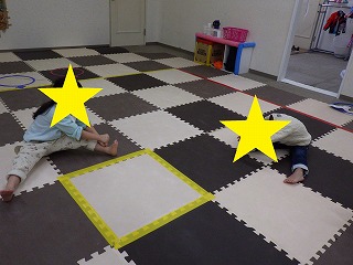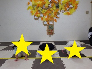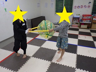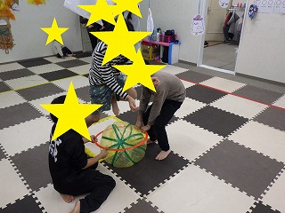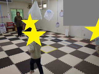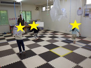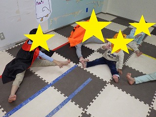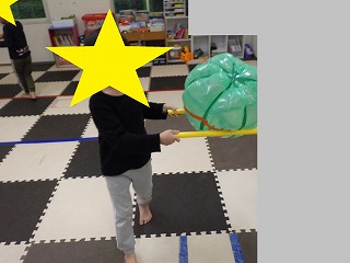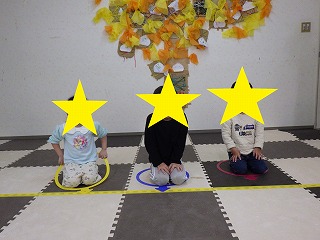 今日のかかしはフープから出ないようにかかしに変身してみようね♪