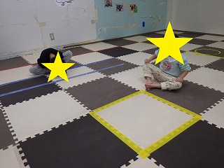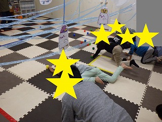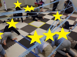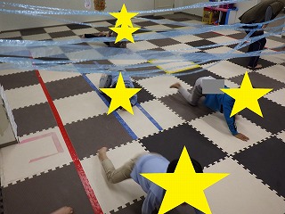 親分がくもの巣をはるのでみんなはそれにさわらないように進みましょう。