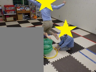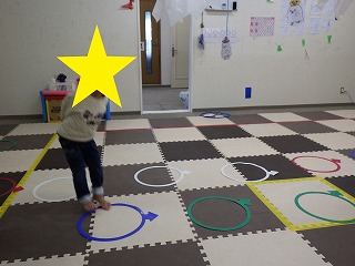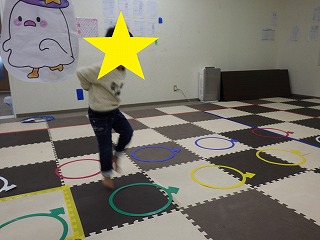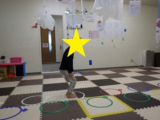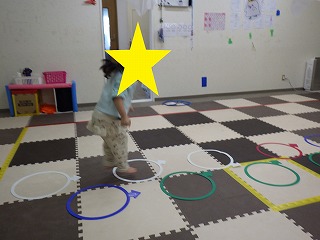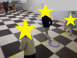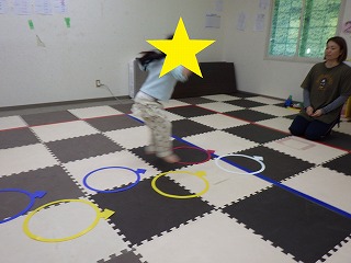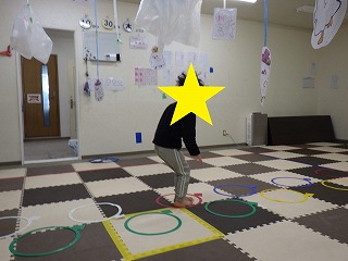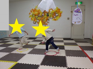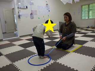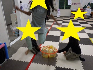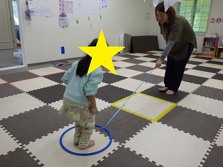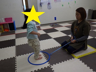 フープがゆっくりと動くので、小さくジャンプしてフープに当たらないようにしてみよう♪