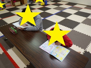 検温、手洗いとうがいを済ませたら宿題に取り掛かります。
