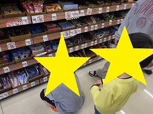 ブロックで作品を作った子やみんなでお絵描きをして、おやつを近くのお店に買いにいきました。