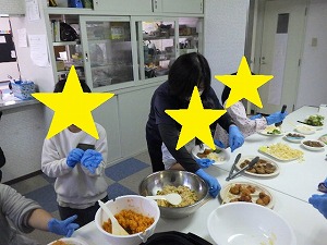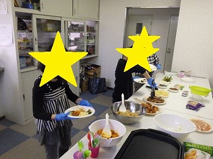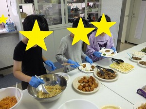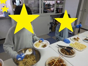 「何食べようかな~」と悩みながらみんなよそっていました。