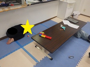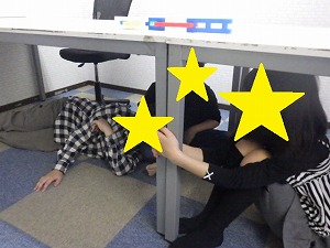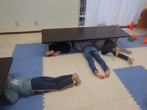 最初は驚いていたけど、みんなしっかり机の下に隠れることが出来ました。