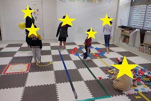 みんなが揃ったら、お片付けをして運動遊びの時間です。