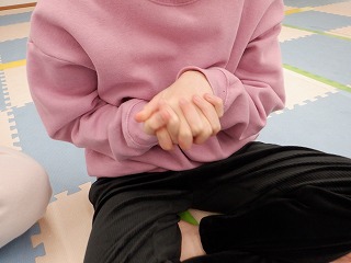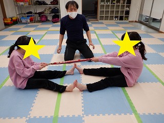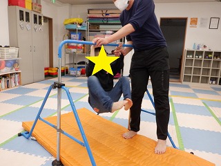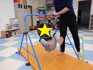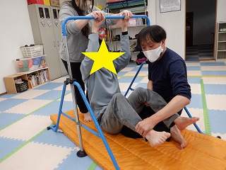 ぶら下がったまま足の裏をパチン!とくっつけましょう♪