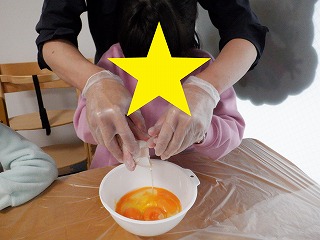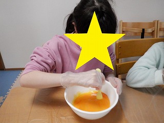 卵を割ったり、ホットケーキミックスをグルグル混ぜ合わせたりして美味しいホットケーキが完成しました!