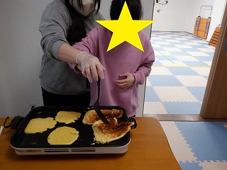 ホットケーキをひっくり返すのも上手にできたね☆彡