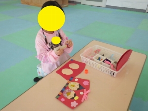たくさんのおもちゃで遊び、季節の工作も体験させていただきました。