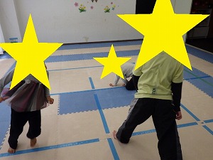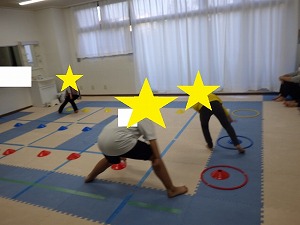 みんな床に足が落ちないように気を付けたり、遮断機を上手にかわしながらゴールまで移動する事が出来ました!!