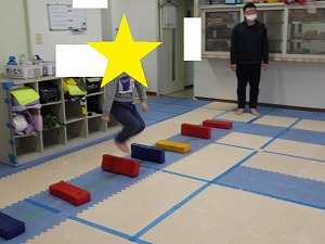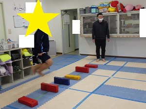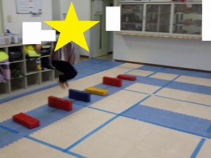 ☆横向き丸太越えジャンプ(跳躍力・バランス感覚・空間認知能力)