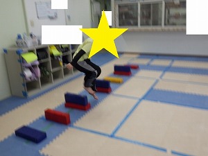 丸太に見立てた平均台の上を、両脚をくっ付けたまま勢いよく跳んでいきます(^^)/