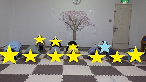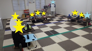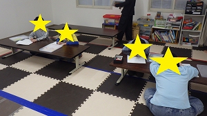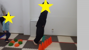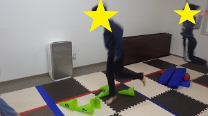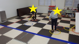 お友だちと同じ数の障害物が輪になって並んでいます。