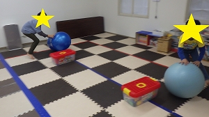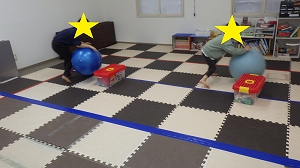 大きなバランスボールチームとピーナッツ型のバランスボールチームに分かれました。