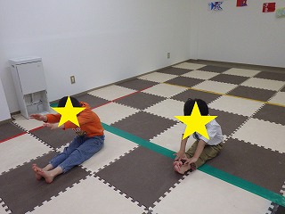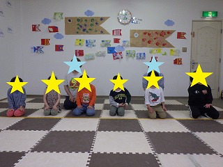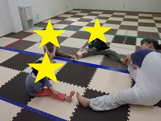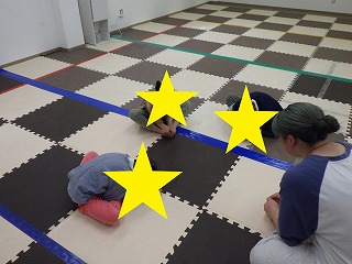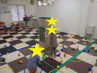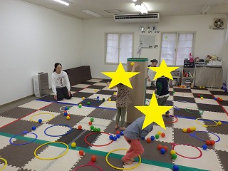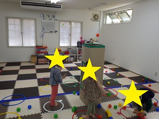 教室内にフープを置いてその中をカンガルージャンプで進んでいきます(*'▽')