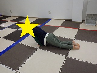 「よーい」の合図で肘を伸ばし上半身を持ち上げます。