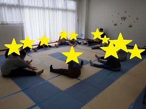 怪我をしないように柔軟体操で体をよくほぐしましょう!
