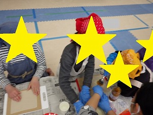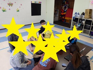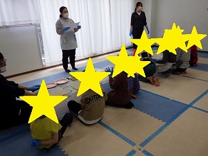 3月25日(土)リズムフープゲーム他、おやつ作り(アップルパイ作り)、避難訓練≪地震について≫