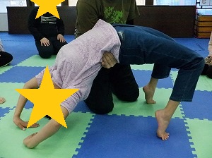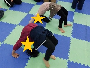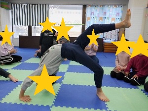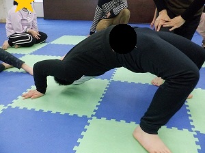 やってみたいお友達は、ブリッジにも挑戦しました。片足を上げて難易度アップ!!