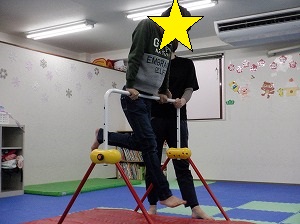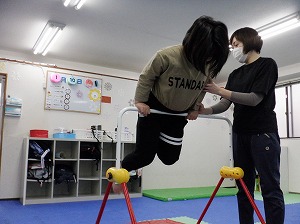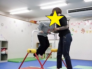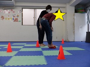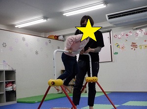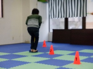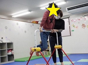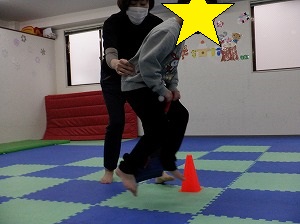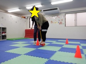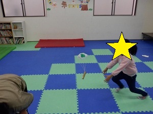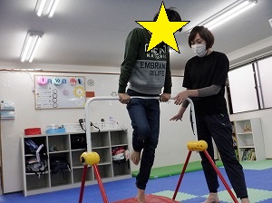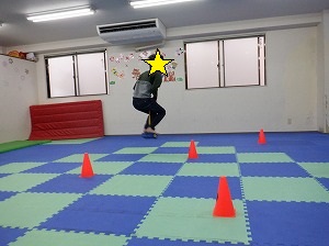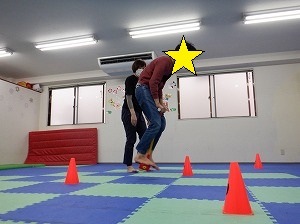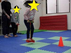 ホッピングジャンプ!ジャンプするのと、両手は引き上げる動作を同時に行います。慣れると上手に跳べるようになるよ!(^^)!