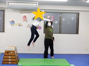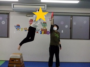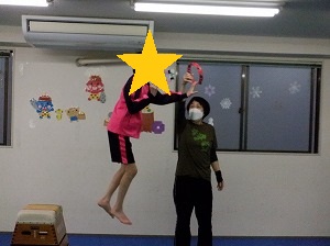 跳び箱からジャンプしながら、タンバリンにタッチ!!