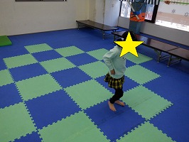 手と足をピーンと伸ばし、手を見ながらグルグル回ります。