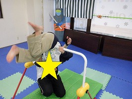 鉄棒では腕をピーンと伸ばし、きれいなスズメさんの姿勢を取ったらぐるりん、と1回転!