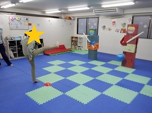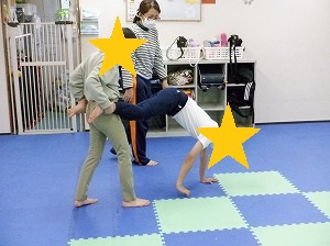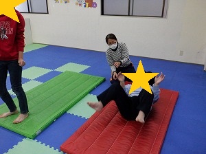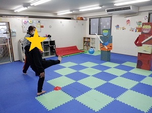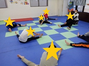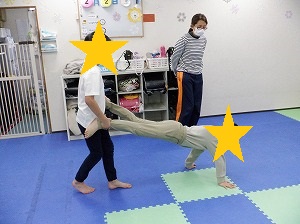 先生の声に合わせて、手の指をグー!パー!足の指をグー!パー!