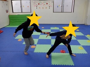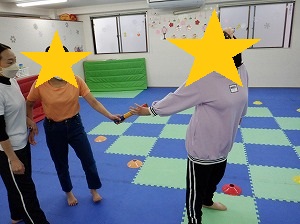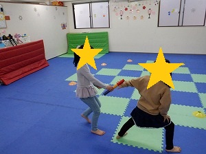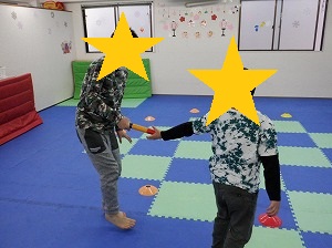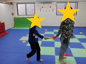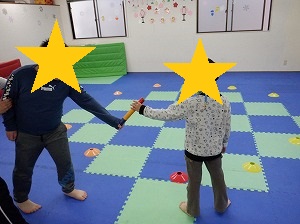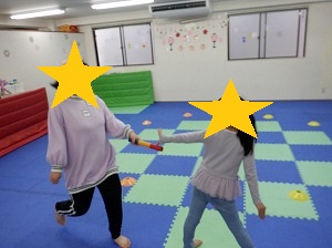 バトンを渡す時は、赤い部分がお友達の手に渡るようにパスします。