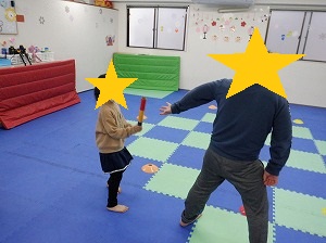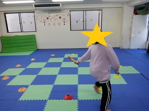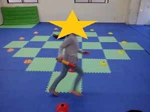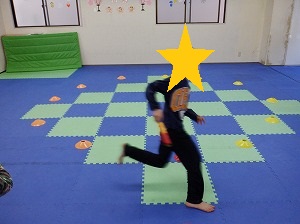 バトンを受け取ったら青い部分を持って走ります。間違えずにできたかな?