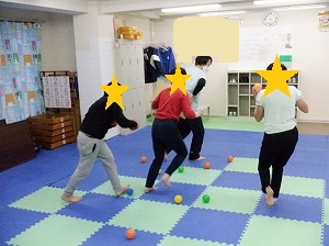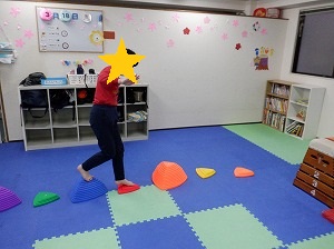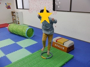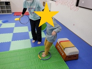 (放デイ)手足ブラブラ サーキット(ストーン渡り→フープ目掛けてジャンプ→前転)