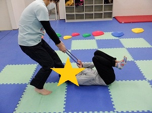 力を抜いて、手をブラブラ~!足をブラブラ~!手足一緒にブラブラ~!